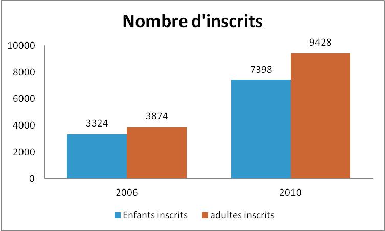 Dans les résultats de 2006, 7 structures n’ont pas répondu à la question concernant leur nombre d’inscrits |