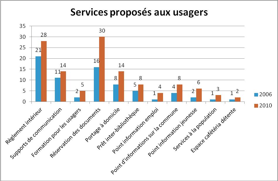 Note méthodologique : 4 bibliothèques n’ont pas répondu au questionnaire de 2006 et 2 en 2010.