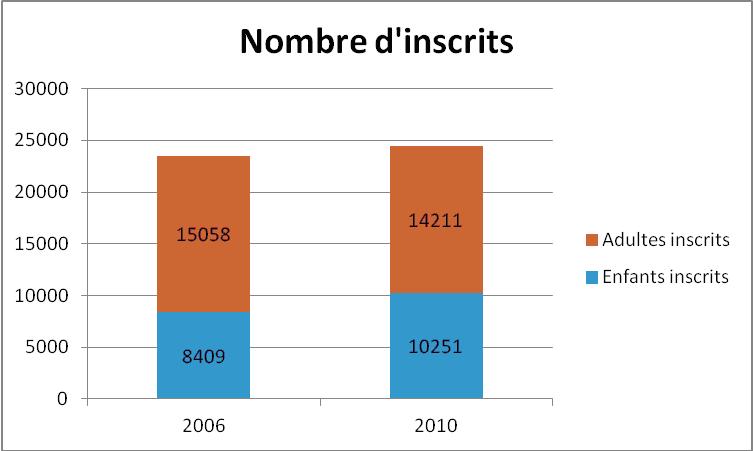 Le département de l’Aube connaît une hausse progressive du nombre d’inscrits, puisque, dans le cadre des bibliothèques de notre enquête, il passe de 24 295 en 2006 à 24 852 en 2010. Cette augmentation est visible dans tout le département.