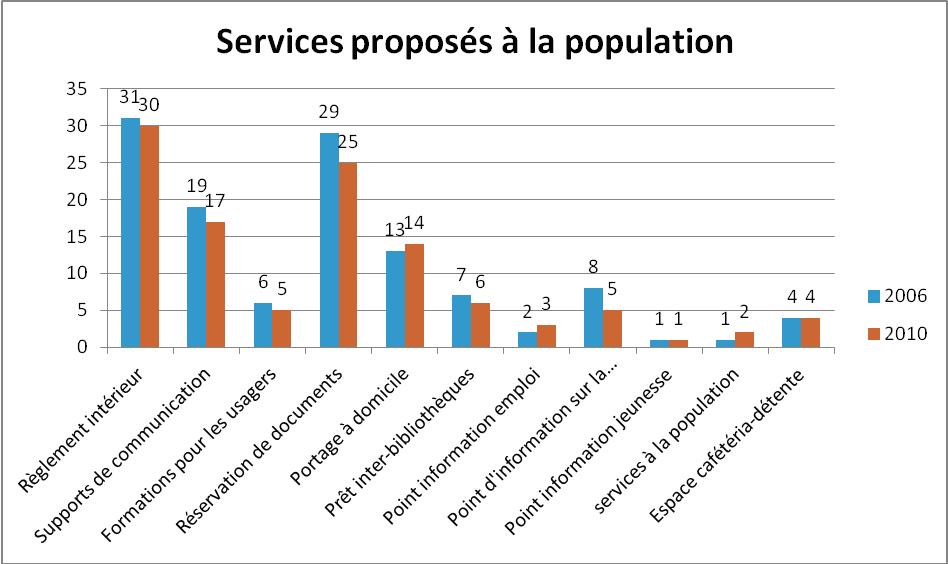Tableau 10 : Services offerts par les bibliothèques par tranches d’habitants